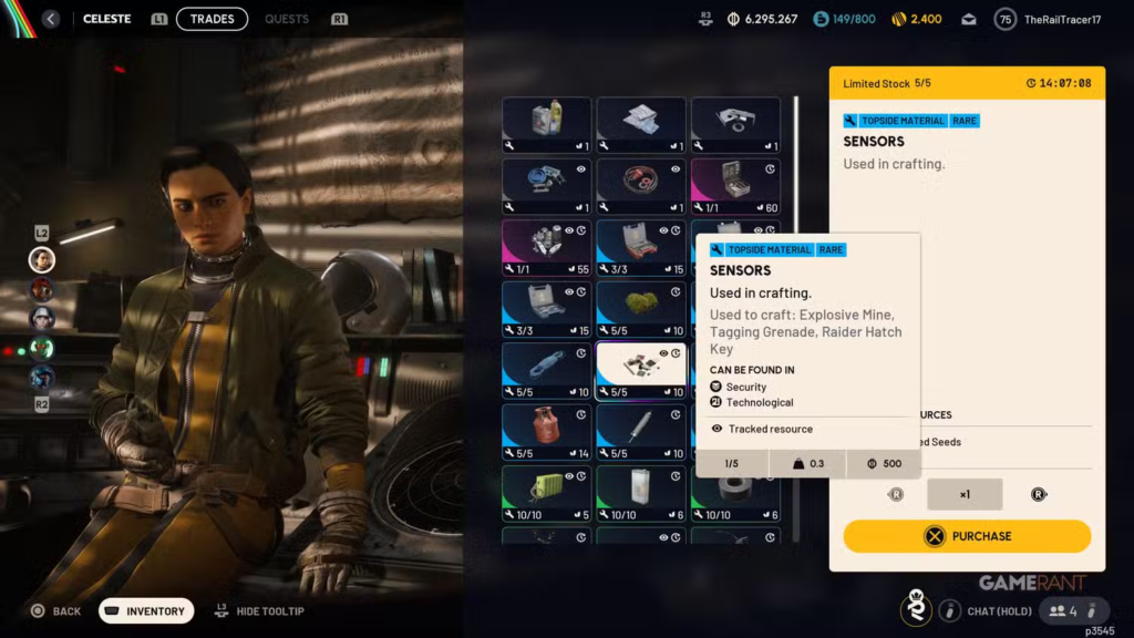 There are two primary ways to secure Sensors. The first option is buying them through the Vendors tab. Celeste offers Sensors for 10 Seeds each. She stocks 5 at a time, and her inventory refreshes daily. This guarantees up to five Sensors per day if you have enough Seeds available. If you prefer to save your currency, you can search for Sensors directly on Topside instead.