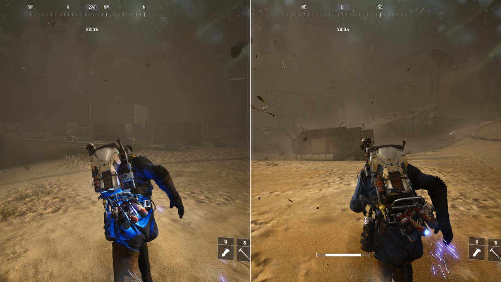 The Hurricane’s wind can either hinder or help your movement. Pay attention to its direction, as running with the wind speeds you up while moving against it slows you down. This effect also influences jumping, sliding, and dodge rolls.