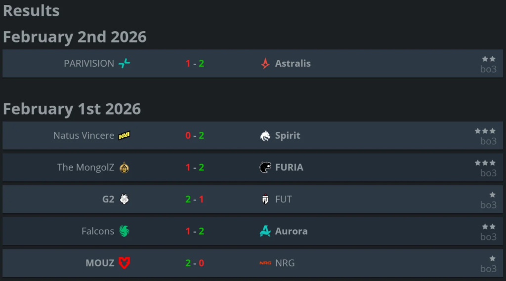 MOUZ also secured convincing wins over NRG on Dust2 and Ancient, booking their place in the upper bracket of their group. The American side started both maps confidently but failed to maintain momentum, allowing the Europeans to seize control of the match.