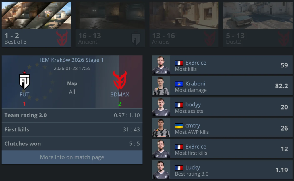 After the first matchday of Stage 1 at IEM Kraków 2026, the tournament immediately picked up momentum, and the fight for a spot in the next stage promises to be intense from the very first rounds.