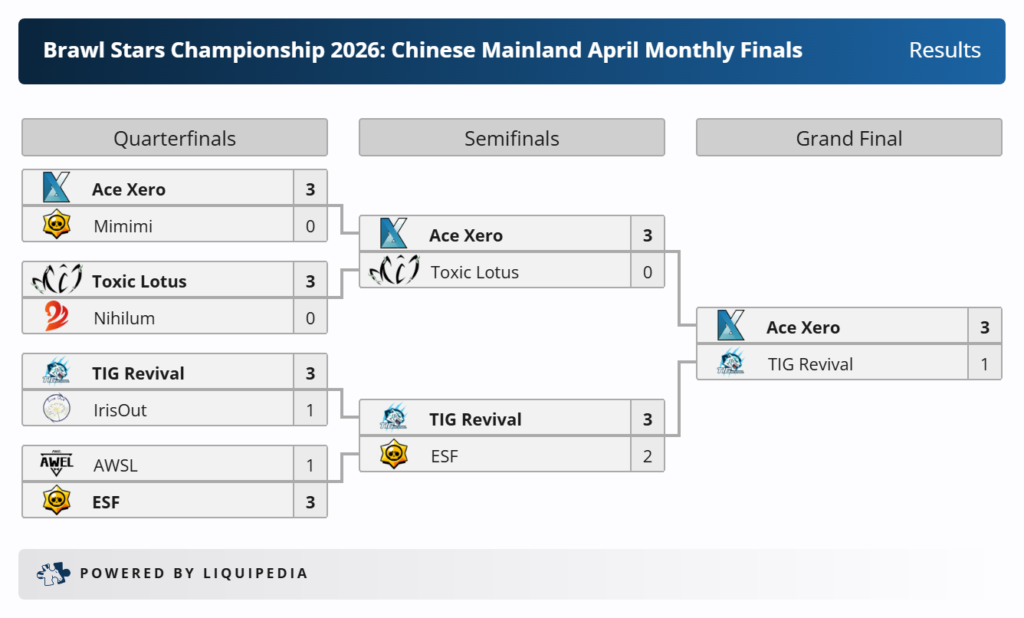 In the Chinese division, Ace Xero confidently dominated the bracket and defeated TIG Revival 3:1 in the final.