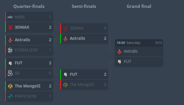 Перед цим Astralis розіграли з 3DMAX слот у фінал, де французи не показали особливо вражаючої гри та поступилися з рахунком 0:2. Тепер вони разом із The Mongolz зіграють матч за третє місце.