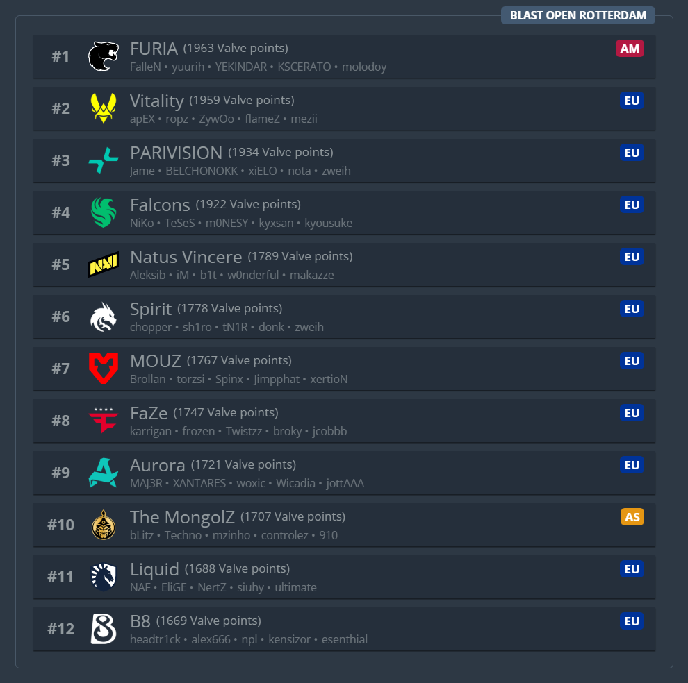 Інвайти на BLAST Open Rotterdam 2026 будуть видані за рейтингом Valve 2 лютого. За цим же рейтингом також будуть видані інвайти на PGL Bucharest, IEM Atlanta та CS Asia Championships.