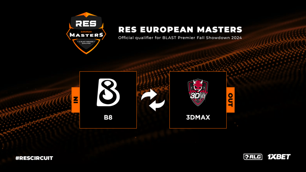 Українська команда B8 замінила 3DMAX на RES European Masters Fall 2024 з CS2, що є кваліфікацією до BLAST Premier: Fall Showdown 2024. Про це організатори турніру повідомили у Твіттері.