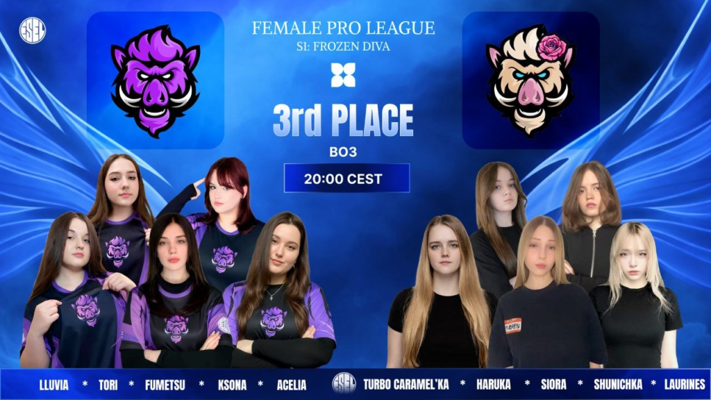 Сьогодні в рамках першого сезону Female Pro League: Frozen Diva з Mobile Legends: Bang Bang відбудеться вирішальне протистояння за третє місце. У поєдинку за бронзові нагороди зійдуться два колективи однієї структури — Boars Gaming та Boars Divine.