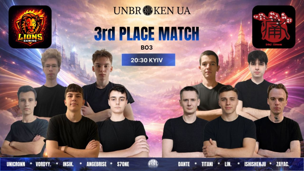 Сьогодні ввечері відбудеться вирішальний матч за третє місце у першому сезоні ліги UNBROKEN UA з Mobile Legends: Bang Bang від турнірного оператора ESEL. У поєдинку за бронзові нагороди зійдуться колективи Lions Gaming та ITAMI.