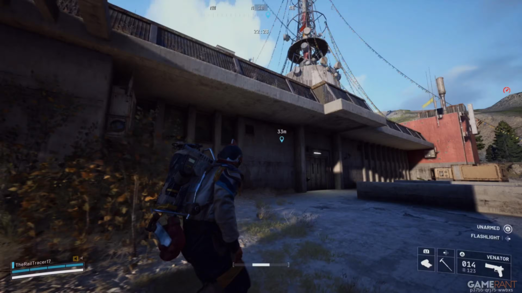Потрапивши на карту Blue Gate, вирушайте до Warehouse Complex. У північній частині цієї зони, на даху головної будівлі, знаходиться антена з невеликим клаксоном внизу. Взаємодійте з нею і відремонтуйте, використавши три Дроти. Після цього прямуйте до Village.