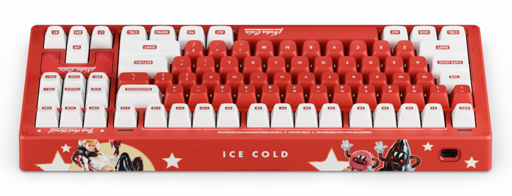 Головним пристроєм введення в колекції стала механічна клавіатура Drop CSTM80. Вона виконана в компактному форматі та розрахована на користувачів, яким важлива економія місця на столі без втрати функціональності. Клавіатура підтримує гарячу заміну перемикачів, що дозволяє експериментувати з різними типами механіки. Версія Nuka-Cola комплектується розширеним набором кастомних кейкапів із символікою Fallout, зокрема знаками, іконками та графічними елементами, безпосередньо пов’язаними зі світом гри.