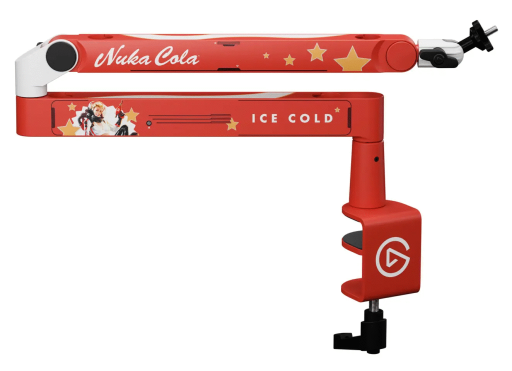 Окремий акцент Corsair зробила на аудиторії стрімерів і відеоблогерів. Для них підготовлені спеціальні версії USB-мікрофона Elgato Wave: 3 та низькопрофільного кронштейна Wave Mic Arm LP. Мікрофон і надалі позиціонується як рішення формату «підключив і працюй», пропонуючи конденсаторну капсулу, програмне керування, моніторинг із мінімальною затримкою та глибоку інтеграцію з ПЗ Elgato для маршрутизації звуку. Тематичне оформлення додає корпусу й кронштейну характерні елементи Nuka-Cola. У такому ж стилі виконана й спеціальна версія Stream Deck, яка поєднує програмовані клавіші для керування робочими процесами з фірмовим дизайном.