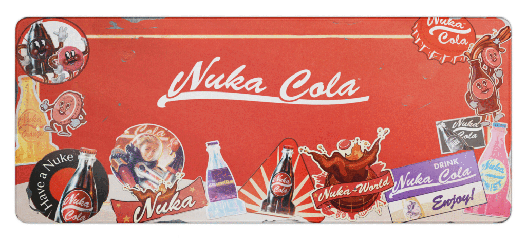 Завершують серію тематичні аксесуари для робочого простору. Серед них великий настільний килимок з ілюстраціями у стилі Fallout, який слугує візуальною основою всієї збірки. Також доступні окремі набори кейкапів із відсиланнями до силової броні, автоматів Nuka-Cola, «Пристрою спраги» та інших впізнаваних елементів гри. Вони дають змогу точково кастомізувати клавіатуру, зберігаючи звичну розкладку й додаючи характерні акценти.