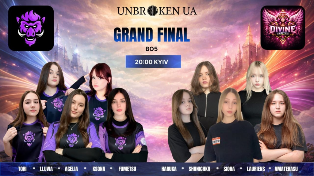 19:30 — Жіночий Гранд-фінал: Boars Gaming Female vs Divine Gaming