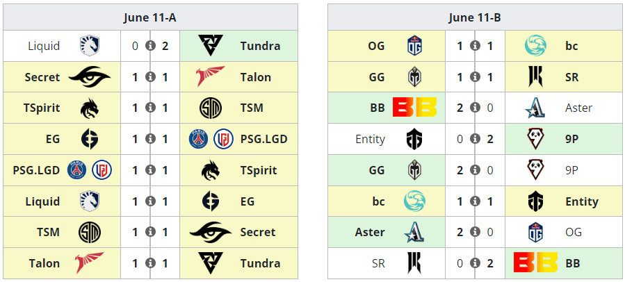 11 червня стартував DreamLeague Season 20 з Dota 2. Команди з обох груп зіграли по два bo2 матчі. На даному етапі важко виділити фаворитів на вихід в наступний етап, так як турнір тільки стартував.