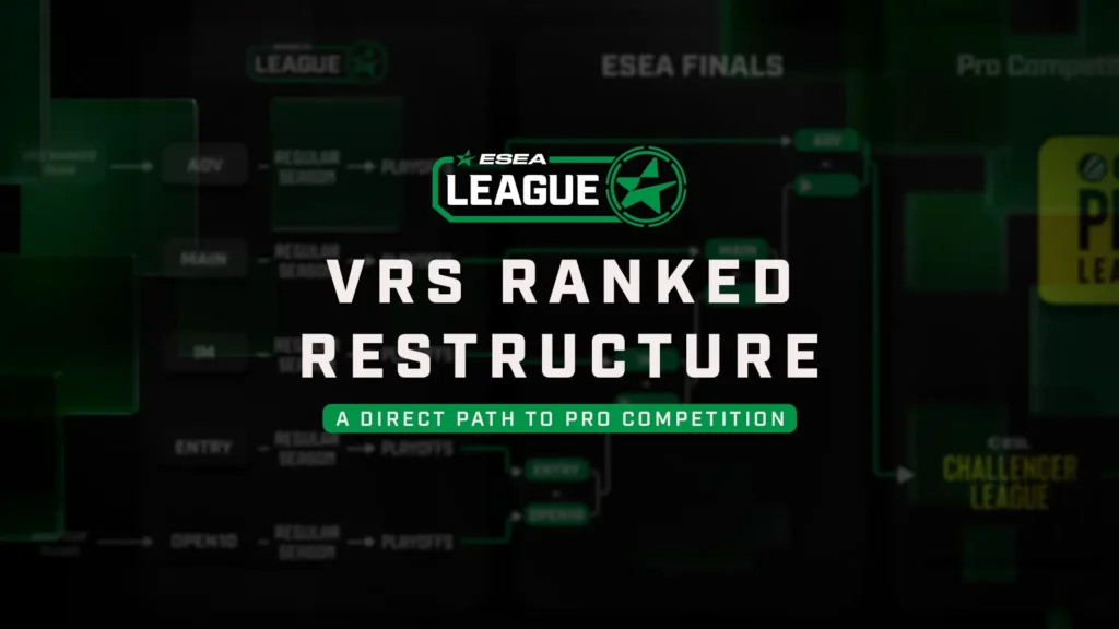 З 56 сезону (реєстрація з 3 грудня 2025 по 7 січня 2026) ESEA League змінює свій формат, переходячи на VRS-ranked систему. Всі групи від Open10 до Advanced тепер працюватимуть у новому рейтинговому форматі, а найкращі команди пройдуть у Фінальну Сітку з шансом отримати Wildcard-запрошення до ESL Challenger League. Матчі, що висвітлюватиме HLTV, принесуть командам VRS Points, що відкриває шлях до професійного рівня Counter-Strike.