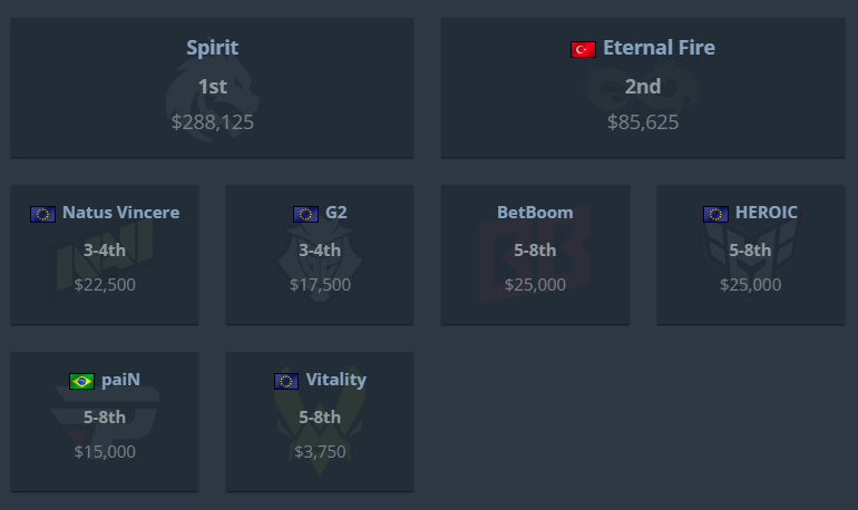 Турецький колектив заробив $85.625 за друге місце. spirit отримали $288 тис.