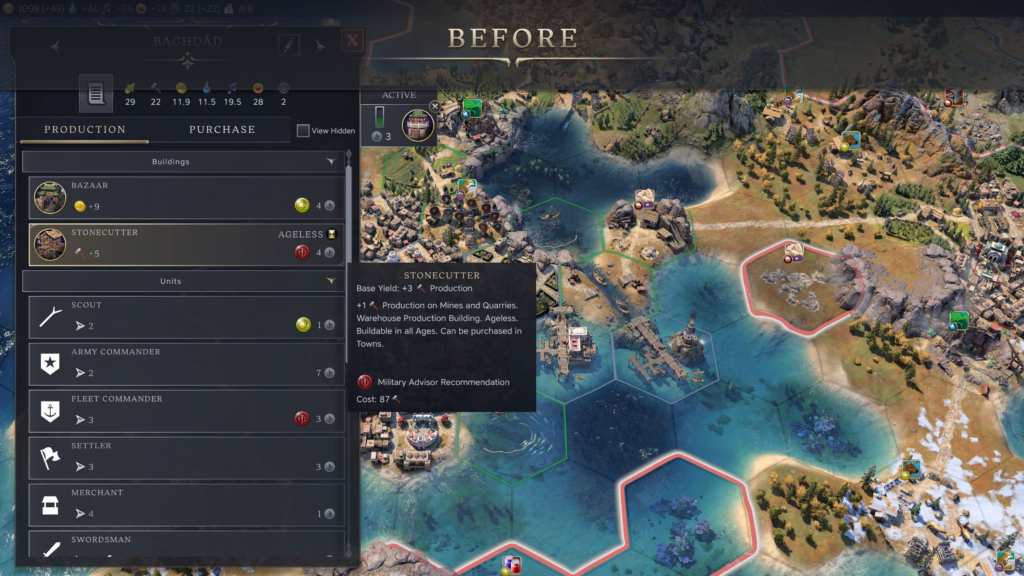 У системі Економіки: видалені накопичувальні відсоткові бонуси, вартість будівель зростає поступово, збільшені витрати золота й утримання армії в пізніх епохах