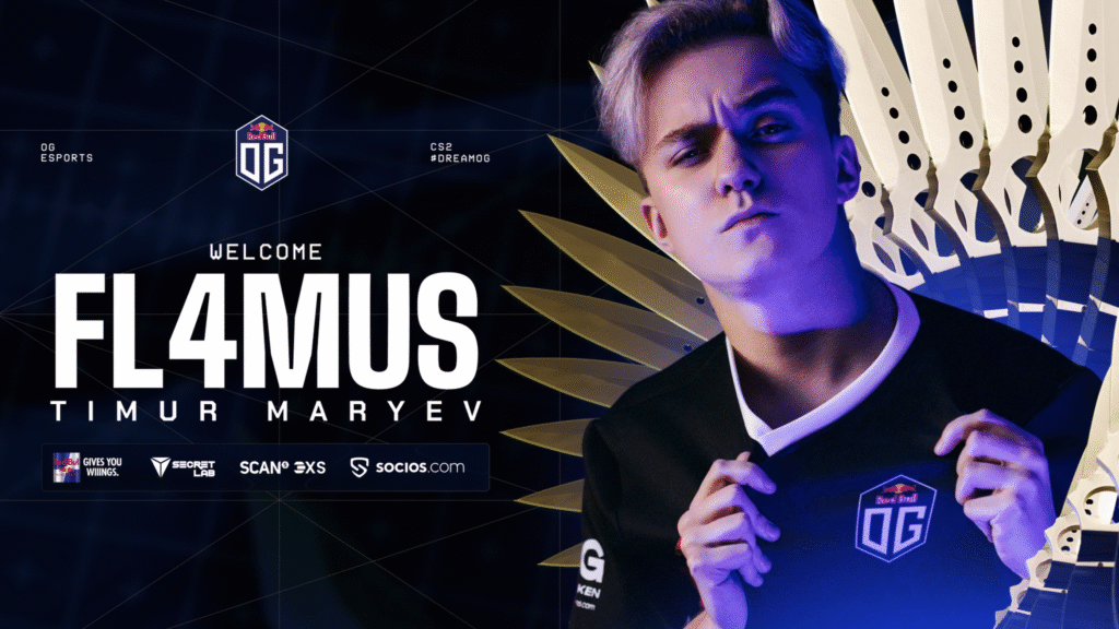 OG завершили формування свого складу з CS2, підписавши FL4MUS. 21-річний росіянин переходить до команди на «довгострокову» оренду з virtuspro з опцією викупу. Водночас російська організація залишає за собою право розглядати інші пропозиції, доки опцію викупу не буде активовано.