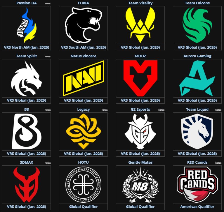 Участь беруть 16 команд. 11 місць отримали запрошення за глобальним рейтингом VRS, ще FURIA пройшла через південноамериканський інвайт, а Passion UA через північноамериканський, ще 3 — через глобальні та американські онлайн-кваліфікації.