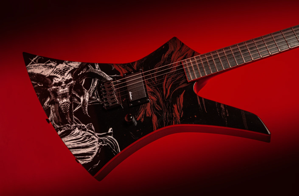 На гітарі є зображення Володаря Ненависті — Мефісто на корпусі та додаткове оформлення Diablo 4 на звороті.