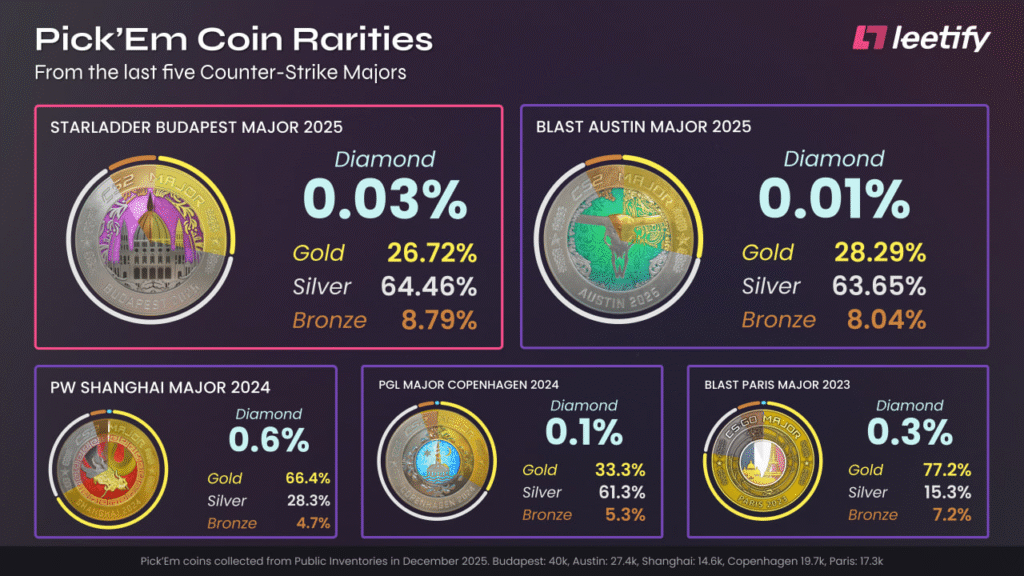 Водночас це втричі більше, ніж на попередньому мейджорі — BLAST Austin Major, де відсоток власників діамантової монети склав лише 0.01%.