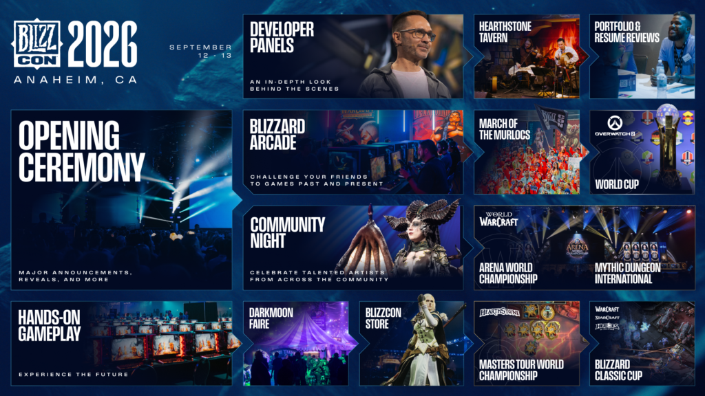 Blizzard анонсувала BlizzCon 2026 і повідомила, що квитки на подію вже можна придбати. Сам захід відбудеться 12-13 вересня наступного року в конференц-центрі Анахайма в Каліфорнії, США.
