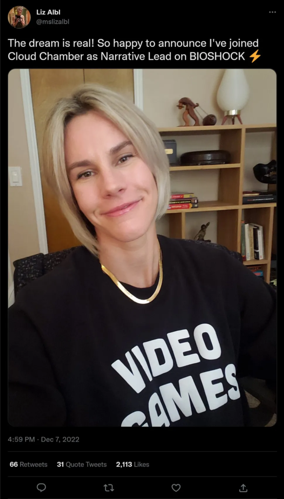 Колишня наративна лідерка BioShock 4 Ліз Албл перейшла до CD Projekt Red після хвилі скорочень у Cloud Chamber, спричинених проблемним виробництвом гри.