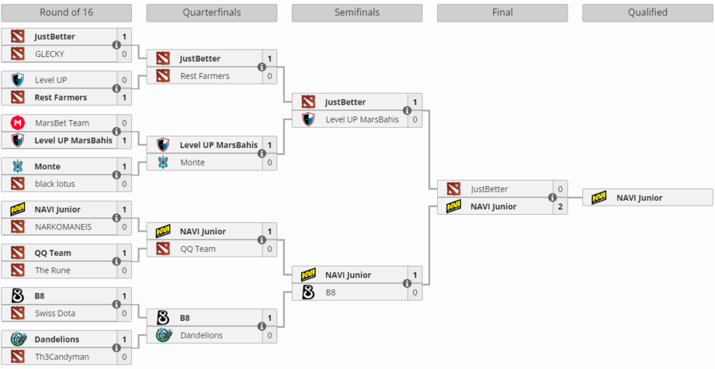 NAVI Junior перемогли JustBetter у фіналі першої відкритої кваліфікації для Західної Європи до DreamLeague Season 23 з Dota 2. Матч завершився з рахунком 2:0.