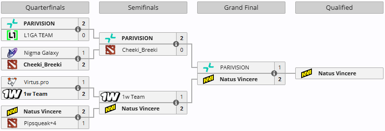 Також на своєму шлях Natus Vincere здолали Pipsqueak+4 (2:1) і 1w Team (2:1).