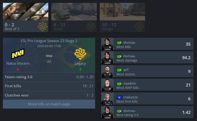 Народжені перемагати зараз мають явно не найкращу форму, але сьогодні вони здивували своїх вболівальників не з найкращого боку. Вони програли бразильцям із Legacy, які перебувають поза ТОП-30 світу та потрапили до цієї стадії через Stage 1.