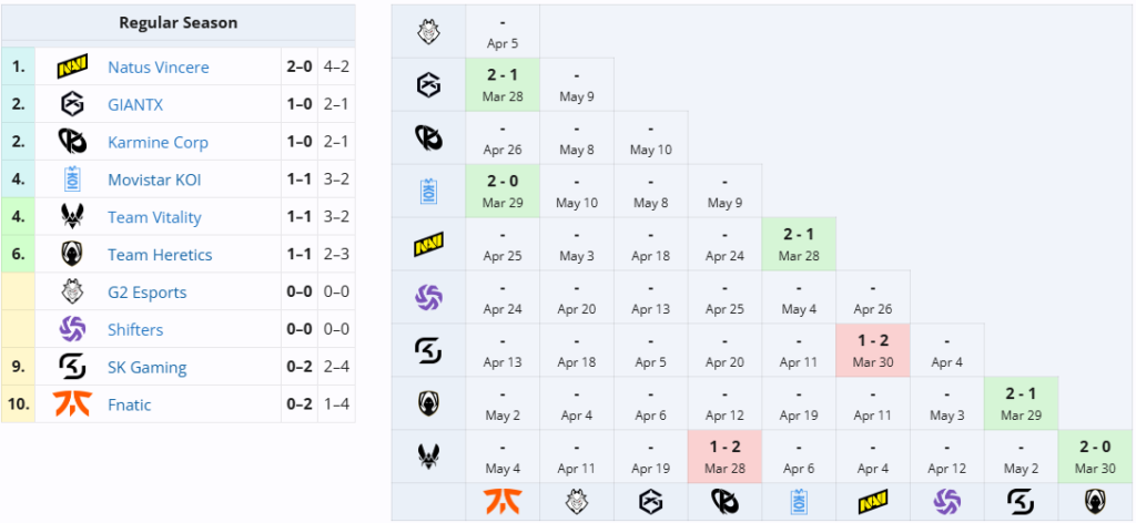 Natus Vincere грали проти Movistar KOI і SK Gaming, обидва матчі завершилися на користь Народжених Перемагати з рахунком 2:1.