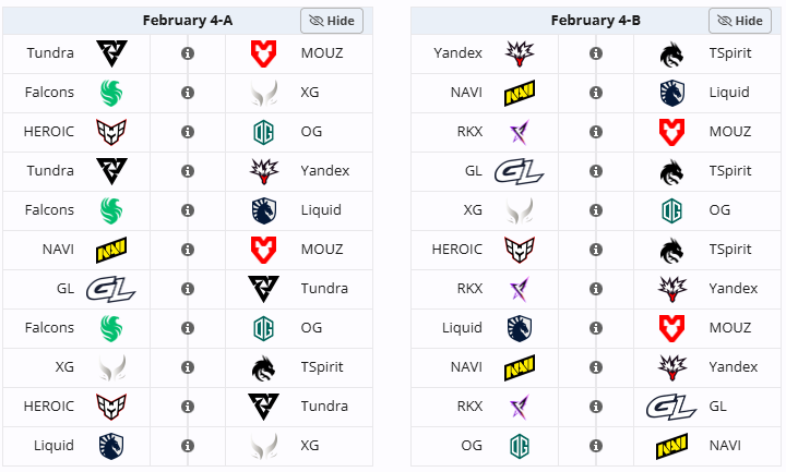 Сьогодні, 4 лютого, будуть зіграні ще 22 матчі групової стадії, а перші стартують об 11:00 за київським часом. Цього разу розклад Natus Vincere виглядає наступним чином: