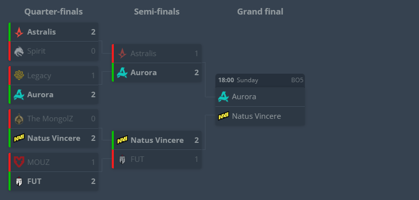 Передостанній день турніру підійшов до кінця. Сьогодні відбулися дуже запеклі півфінали, які, схоже, визначили достойних претендентів на кубок. До фіналу пройшли NaVi та Aurora, а Astralis і FUT вилетіли з турніру, але ще зіграють матч за третє місце.