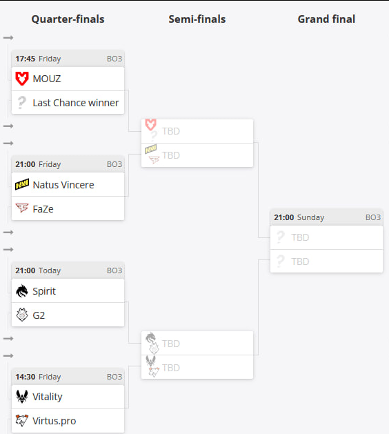 Вже стала відома сітка плей-оф. NAVI зустрінуться з FaZe. Зараз матч запланований на 19 липня о 21:00.