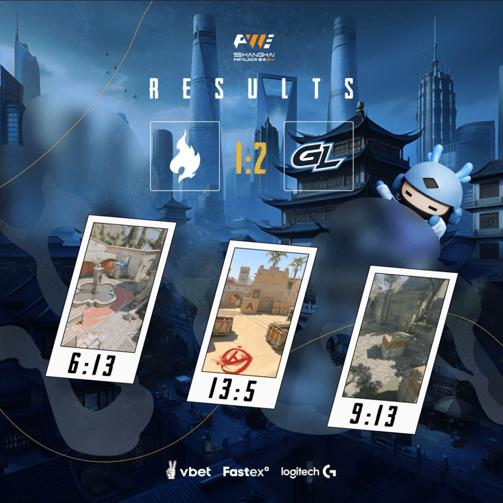 Passion UA програли GamerLegion у матчі за прохід в стадію Elimination на Perfect World Shanghai Major 2024 з CS2. Гра завершилася з рахунком 1:2 (6:13 на Inferno, 13:5 на Mirage і 9:13 на Ancient).