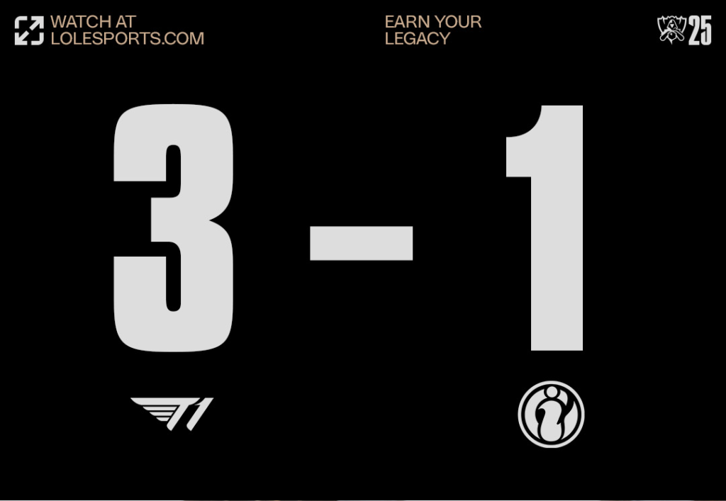 Головний турнір з League of Legends — Worlds 2025 стартував з протистояння T1 проти Invictus Gaming в матчі на виліт в рамках стадії Play-In. Перемогу здобула південнокорейська команда з рахунком 3:1.