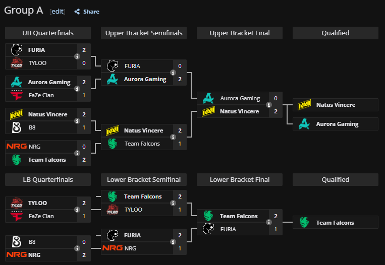 Aurora стали другим сюрпризом. На старті вони обіграли FaZe Clan 2:1, які явно були в дуже поганій формаі, потім розібралися з FURIA 2:0 і посіли друге місце. Команда показала хорошу форму, що зазвичай не дуже притаманно для них. Особливої стабільності від турецького складу не очікують, однак якщо їхній стрік продовжиться надалі, то вони можуть робити гарну заявку на стабільну S-tier команду.