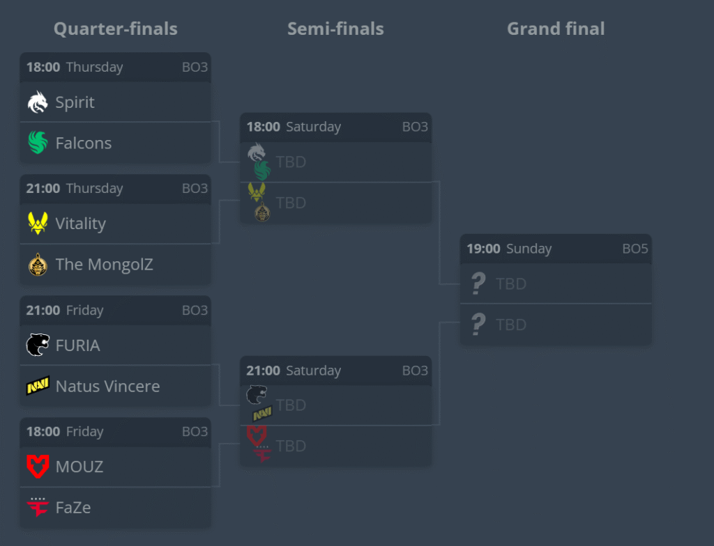 Як Falcons, так і Spirit мають хороші шанси на перемогу на цьому мейджорі — і навіть не стільки через злагоджену або стабільну командну гру, скільки завдяки своїй індивідуальній силі. У Spirit це donk та sh1ro — одні з найкращих гравців турніру та всього року. У Falcons вогневу міць забезпечують m0NESY, kyousuke та NiKo, які майже завжди демонструють стабільно високі індивідуальні показники.