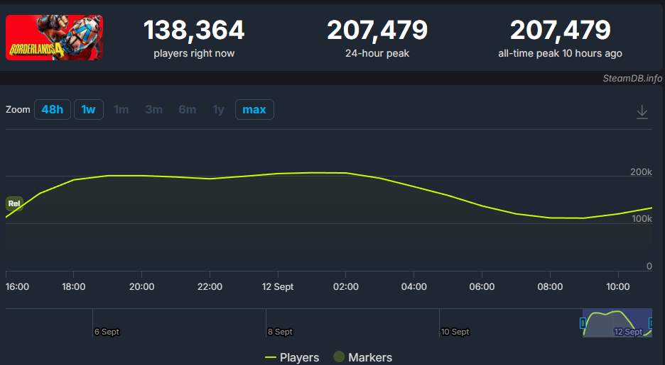 Варто відзначити, що четверта частина має найкращий старт серед ігор серії Borderlands. За даними SteamDB, одночасно в гру грало 207,479 гравців.