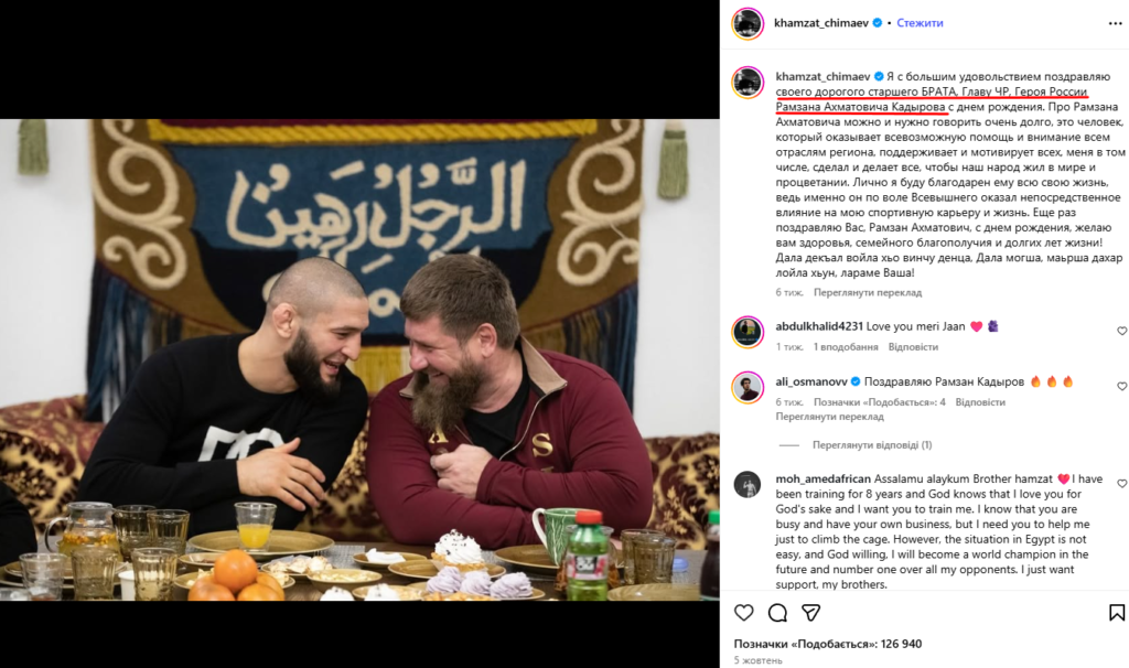 Кіберспортивна організація Nigma Galaxy повідомила, що російський боєць MMA хамзат чімаєв став її амбасадором. Анонс з’явився в соціальних мережах клубу.