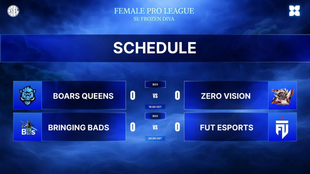 В сьогоднішніх матчах будуть грати лідери групи A – Boars Queens і Zero Vision. Також між собою зіграють Bringing Bads та FUT Esports, вони виступають в групі D та мають однакову статистику 1-0.