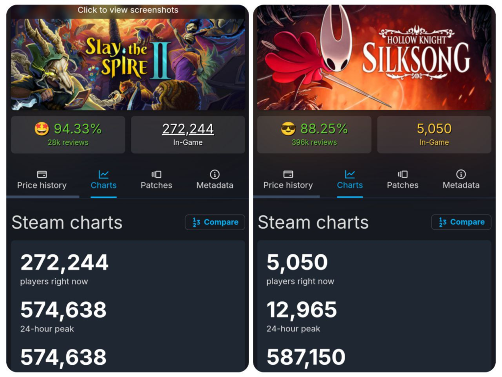 Для порівняння, у Hollow Knight Silksong максимальний онлайн становив 587 тисяч користувачів, однак ця цифра була зафіксована під час повноцінного релізу, а не на етапі раннього доступу.
