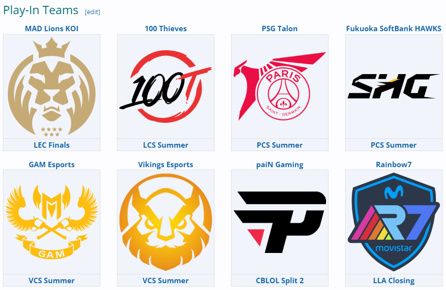 Стадію Play-In будуть грати MAD Lions KOI, 100 Thieves, Fukuoka SoftBank HAWKS, PSG Talon, GAM, Vikings, paiN і Rainbow7. За результатом плей-ін в групову стадію пройде чотири команди.