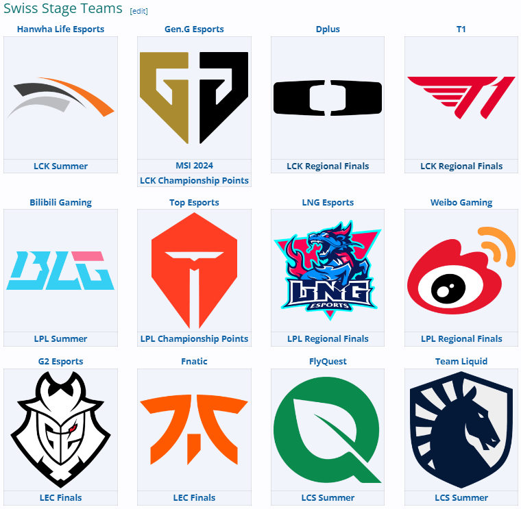 Групову стадію точно зіграють Hanwha Life Esports, Gen.G, Dplus, T1, Bilibili Gaming, Top Esports, LNG, Weibo Gaming, G2, Fnatic, FlyQuest і Liquid.
