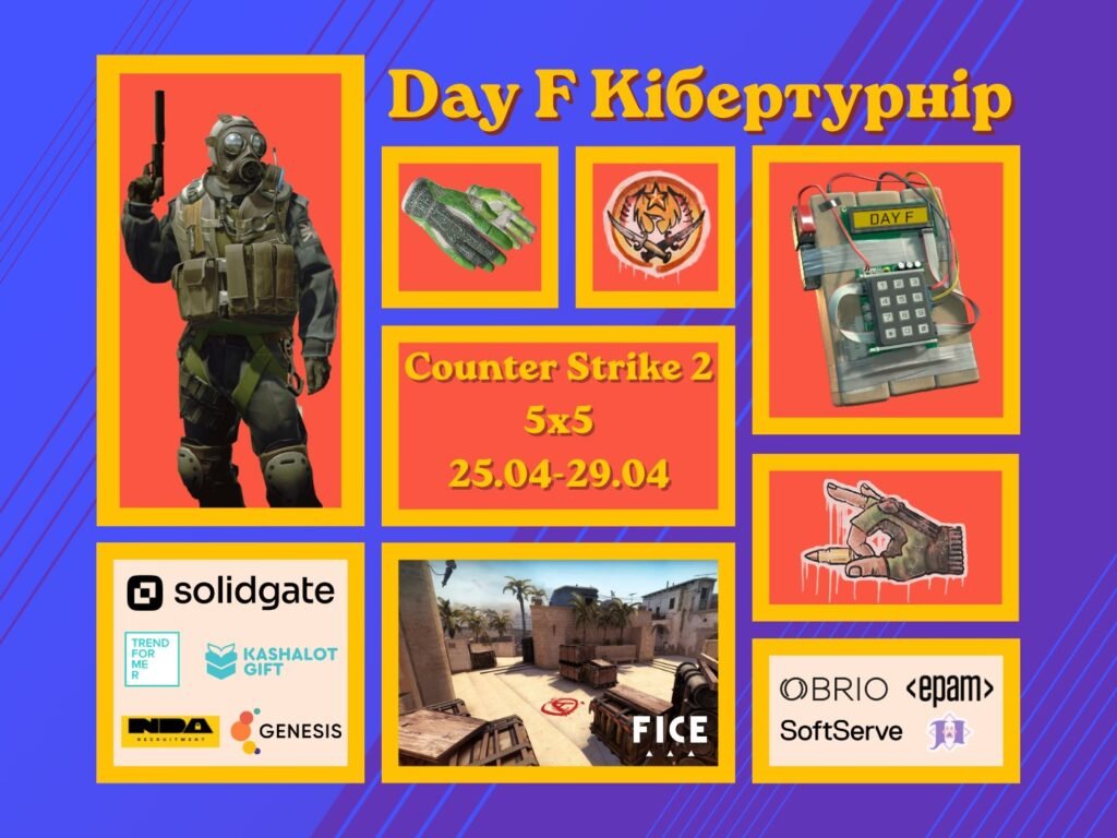 Студентська рада Факультету інформатики та обчислювальної техніки (ФІОТ) КПІ ім. І. Сікорського анонсувала турнір з CS2 в рамках події Day F 2026. Матчі пройдуть 25-27 квітня онлайн на платформі Challengermode, а фінал 29 квітня — в Хабі ФІОТ.