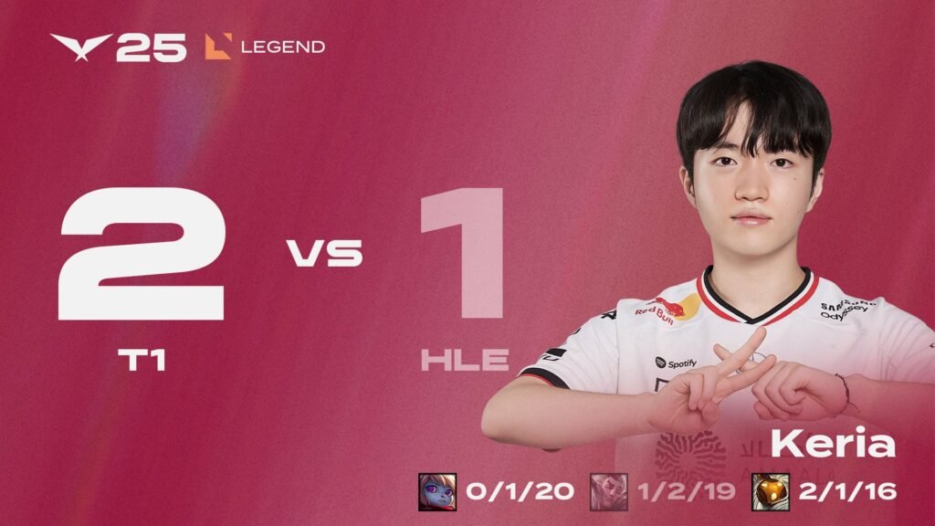Матч BO3 завершився з рахунком 2:1 на користь T1. MVP матчу – Рю Keria Мін Сок.