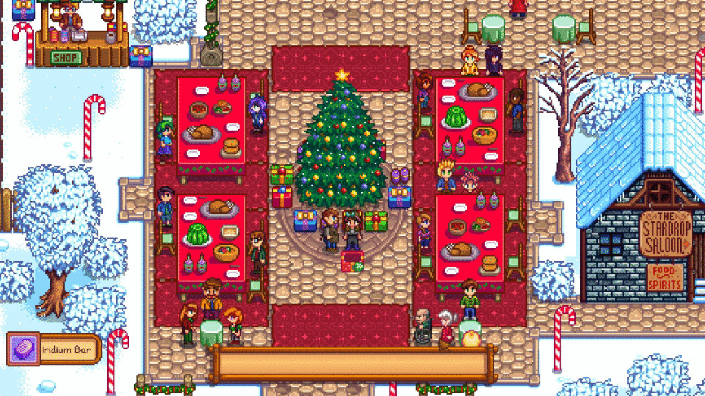 У цій грі зимовий сезон змінює острів, сідає сніг, повсюди святкові декорації, а 24 грудня проходить Toy Day — день подарунків🎁.