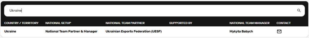Українським партнером стала Федерація кіберспорту України (UESF). Для нашої країни обрано модель National Team Partner & Manager.