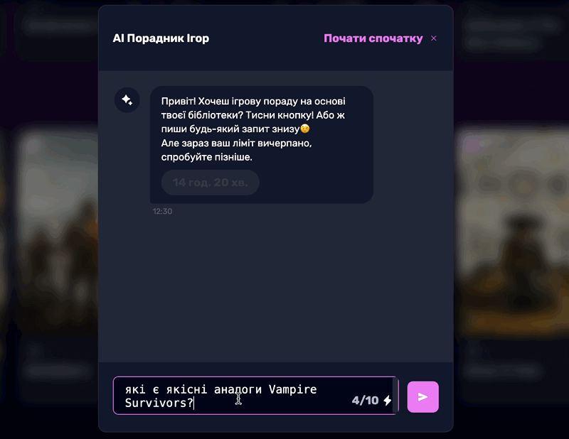 ШІ вивчає вашу бібліотеку та ігрові вподобання, що допомагає йому запропонувати цікаві для вас тайтли. Також асистент враховує в які ігри ви вже грали, що вам сподобалось, а що ні, які проєкти чекають у бібліотеці.