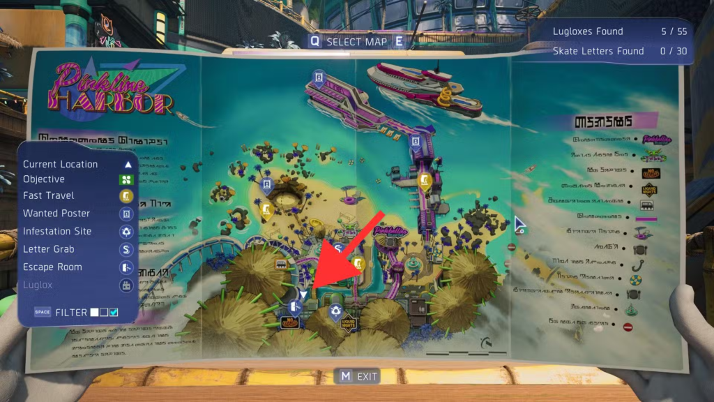 Скористайтеся трейлером для швидкого переміщення до району Town у Pinkline Harbor. Саме тут раніше відбувалося розслідування вбивства Ларрі Пінкстока. Далі вирушайте до південно західної частини мапи, де escape rooms вже позначені. Потрібно спуститися нижче рівнем і пройти через тунель, у якому незадоволений гість готелю сперечається з персоналом.