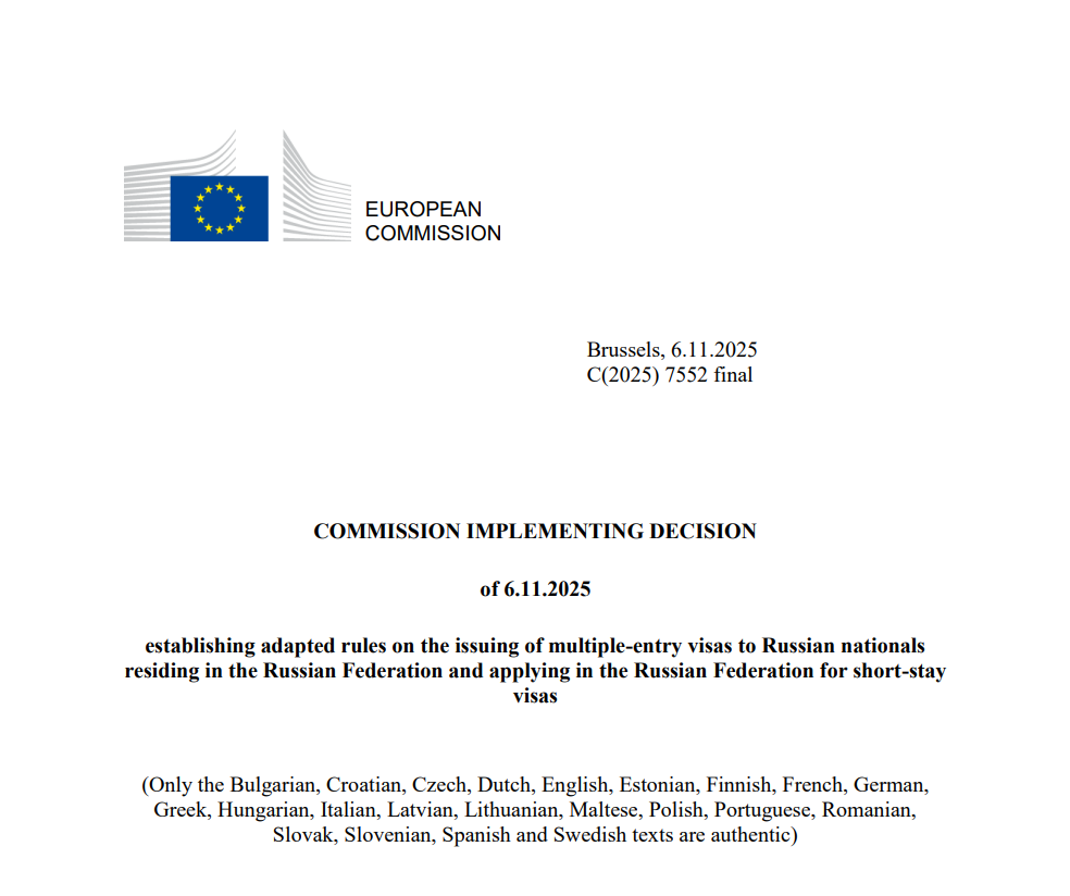 Європейська комісія 6 листопада 2025 року ухвалила рішення, яке суттєво звужує можливості росіян отримувати багаторазові шенгенські візи. Нові правила поширюються на всіх громадян рф, які проживають у росії та подають заяви на короткострокові візи безпосередньо в консульствах країн ЄС.