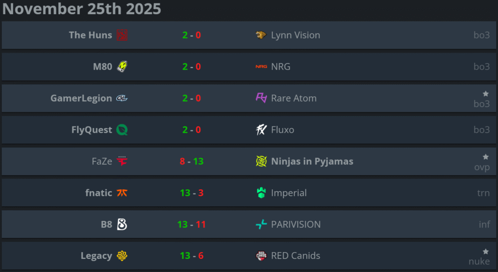 Ninjas in Pyjamas продовжують підніматися турнірною сіткою після важливої перемоги над FaZe — 13:8 на Overpass. FaZe, очолювані karrigan, опинилися на межі вильоту вже на першому етапі. Хоча команда починала обидві половини матчу з перевагою 3:0, відсутність скоординованості та низка необов’язкових помилок не дозволили їм втримати контроль над грою.